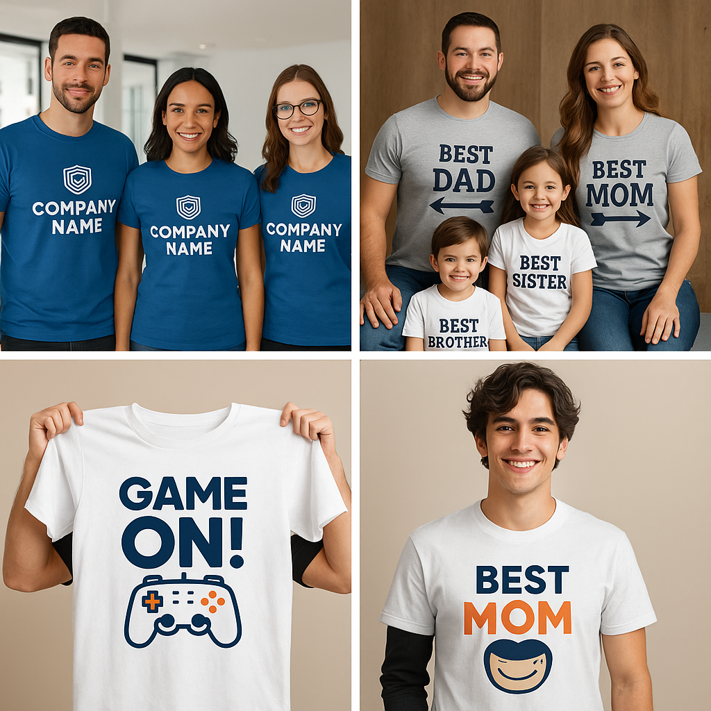 Corporate gifting, Employee welcome kits, Annual day & event merchandise, Startup branding & team uniforms, Conference/expo/meetup tees, Retail brand merchandise, Restaurant/gym/café uniforms